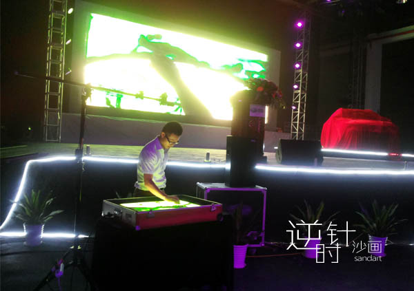 沙画艺术家肖思鑫应邀参加2014年著名主持人李锐主持的一汽奔腾新品发布会,活动地点在车展中心,也是湖南卫视超级男声演出地点,沙画主题《一汽奔腾•进取不止》,活动现场火热,伴随着沙画演出揭开有一汽奔腾最新推出的X80新品牌,同时也讲述一汽奔腾的历史和展现了这些年一汽推出的新产品。一汽奔腾,原身红旗牌轿车,国产领导人专做车,国人支持国产,中国将更强大!