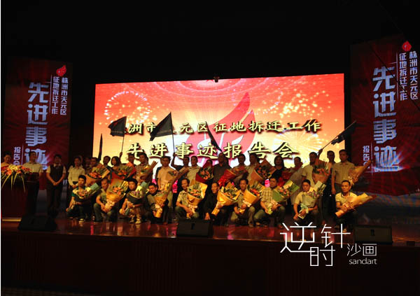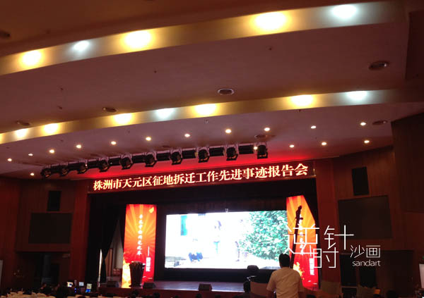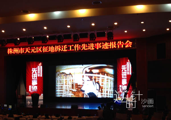 2014年9月23号,沙画艺术家肖思鑫应邀参加株洲天元区政府征地拆迁报告沙画艺术活动。通过沙画艺术展示了株洲天元区政府的征地拆迁和城市建设成果。