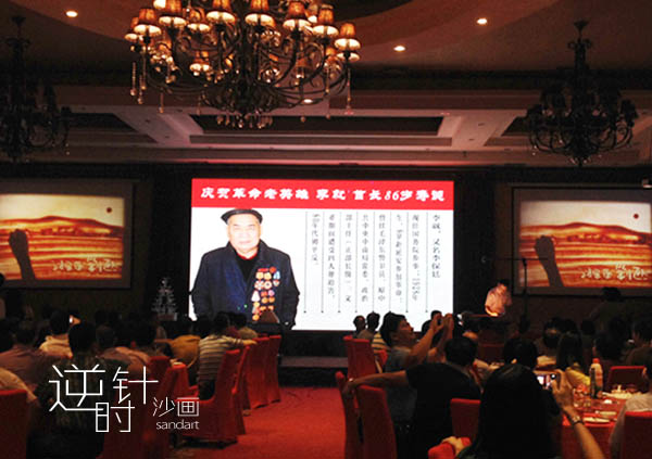 庆贺革命老英雄李就86岁寿辰!沙画艺术家肖思鑫以独特的绘画方式庆贺老英雄万寿无疆,寿比南山!