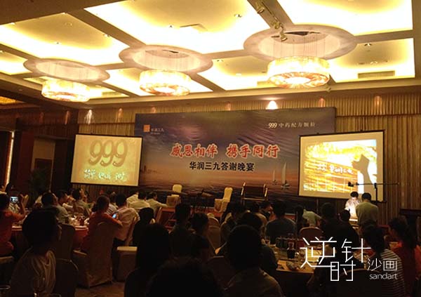 5月23日现场晚宴上,沙画艺术家肖思鑫用沙画形式诠释华润三九医药股份有限公司的发展及实力等。获得台下观众热烈掌声!