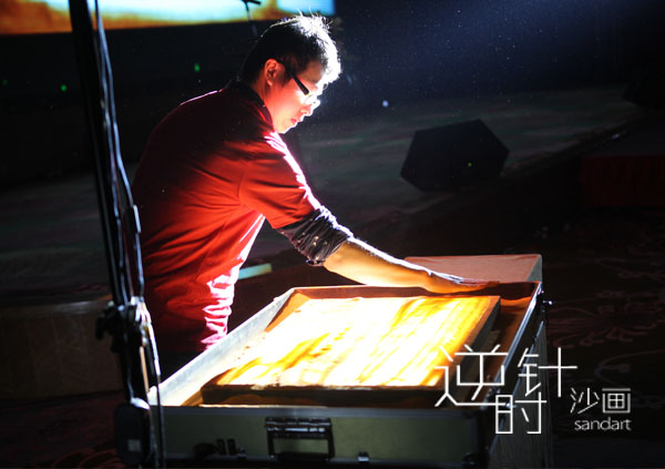 2016年好上好控股集团应邀沙画艺术家肖思鑫展示北高智、天午、大豆、亚讯一路成长合作到好上好控股集团。