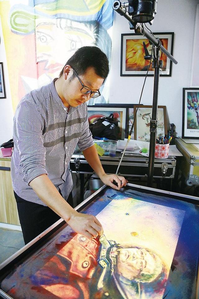 记者了解到,肖思鑫先后创作《铁血丹心滇缅路》新远征、央视春晚《春节心愿》、改革开放40周年《大潮起珠江》等作品。如今,还有不少准新娘特意为了自己的婚礼而来,只希望能在那个特别的日子里,用手下灵动的沙画讲述自己和老公独一无二的浪漫,这也是让肖思鑫动容的。